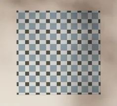 Un complesso motivo geometrico è caratterizzato da forme multiple interconnesse nei toni tenui del beige e del grigio scuro, che formano una struttura a griglia. Il disegno ripetitivo crea un effetto di illusione ottica, attirando l'occhio nell'intricata trama di linee.