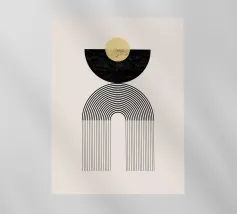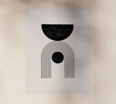 Minimalist artwork with a round shape and black lines pellicola backlit