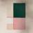 Blocchi di colore minimalisti rosa, verdi e bianchi su uno sfondo color salvia, realizzati con colori acrilici.
