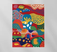 Una composizione astratta giocosa e colorata con una serie di forme organiche simili a blob di varie dimensioni e tonalità. La disposizione stravagante e la tavolozza vibrante creano un senso di gioia spontanea e libertà artistica.