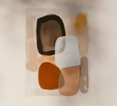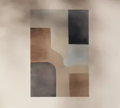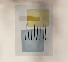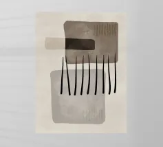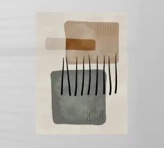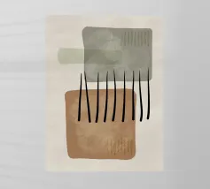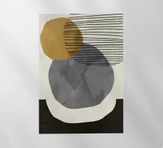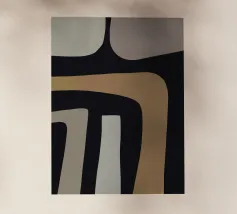 Arte astratta moderna con forme geometriche e organiche combinate con linee e texture in uno stile retrò di tendenza con toni giallo ocra, marrone e grigio. Questa serie si adatta bene a vari stili abitativi come il design, il retrò, il minimalismo, l'industria, gli interni eclettici. Adatto per studio, sala d'attesa, ingresso, soggiorno o camera da letto.