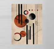 Questo design di grande effetto combina forme geometriche con una tavolozza di colori caldi, come le tonalità della terra, il nero e il rosso. La combinazione di linee verticali, cerchi ed elementi curvi crea un equilibrio armonioso tra struttura e dinamismo. Perfetto per murales, tazze, custodie per cellulari o cuscini: un must per gli amanti dell'arte moderna che vogliono aggiungere un tocco artistico e senza tempo alla propria casa o alla vita quotidiana.