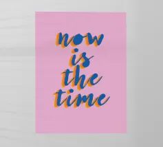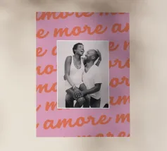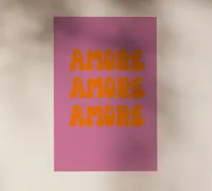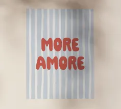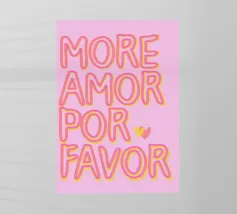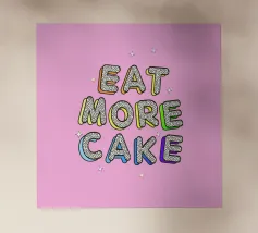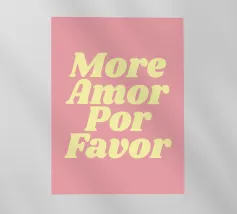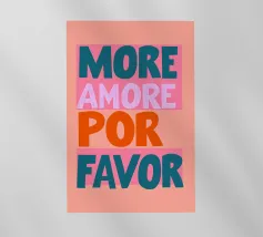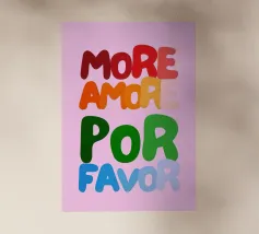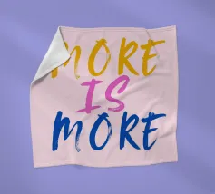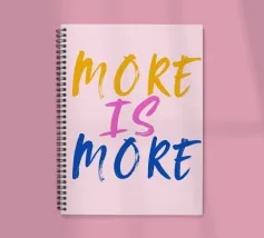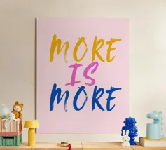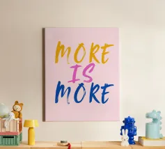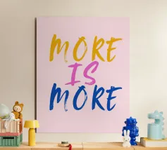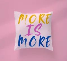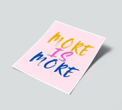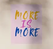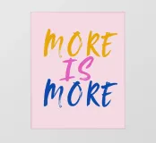 Sfondo rosa con scritte in rosa, blu e giallo: More is more.