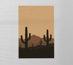 Disegno di viaggio minimalista della Namibia con Deadvlei o Sossusvlei nel Namib. Questo motivo tipico del paesaggio africano è perfetto per tutti i viaggiatori della Namibia che amano le dune di sabbia e i pittoreschi alberi di cammello.