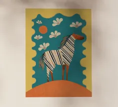 Un poster dai toni infuocati per una terra selvaggia. La Namibia, le sue dune arancioni, le zebre in libertà e gli alberi pietrificati prendono vita in una composizione suggestiva e stilizzata. Ideale per un arredamento potente, che combina natura estrema e bellezza grafica. Ogni curva racconta la storia dell'Africa.