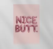 "Nice Butt" in lettere rosa metallizzate su sfondo rosa. La giocosa tipografia a palloncino combina elementi 3D e 2D in un design carino ed estetico - moderno, affascinante e perfetto per gli appassionati di arte tipografica.