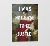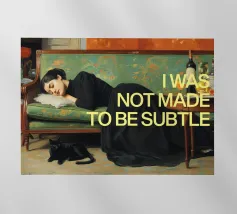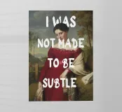 Liberate il vostro lato più audace con "I Was Not Made To Be Subtle", un'accattivante stampa che fonde l'eleganza storica con un potente messaggio moderno. Questa straordinaria opera d'arte presenta il classico ritratto di una donna in un ricco abito rosso, sullo sfondo di un paesaggio sereno, rivisitato in chiave contemporanea. Sovrapposto al testo bianco e vibrante "I WAS NOT MADE TO BE SUBTLE", è una testimonianza dell'individualità e dell'espressione di sé. Questo pezzo è ideale per chi apprezza l'arte che si fa notare, fondendo la bellezza tradizionale con uno spirito ribelle. Stampato a un'eccezionale risoluzione di 7000x5000 pixel e con una