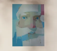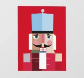 Uno schiaccianoci dall'interpretazione geometrica in un moderno design piatto, creato con forme chiare e un equilibrato spettro di colori rosso, beige e blu pastello. La sua espressione pacata e serena conferisce al classico motivo natalizio un tocco fresco e contemporaneo. La simmetria angolare, i baffi e i dettagli minimalisti rendono l'illustrazione una dichiarazione di stile e modernità per il periodo natalizio.