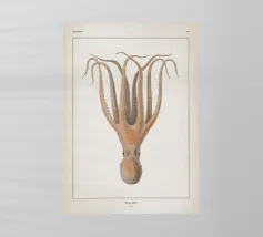 Questa suggestiva stampa d'arte reimmagina un'illustrazione d'epoca del 1890 di un polpo Velodona, originariamente disegnata da Carl Chun per la German Deep Sea Expedition. Ora l'immagine è stata rivisitata in chiave contemporanea con morbide sfumature pastello e forme circolari radianti, elevando l'immagine da scientifica a sacra. Questo pezzo è perfetto per gli amanti dell'oceano, per i collezionisti attenti al design o per chiunque voglia portare un tocco di surreale nel proprio spazio. Ideale per bagni, nursery a tema costiero o come audace dichiarazione in interni moderni: è la storia naturale con un'anima psichedelica.