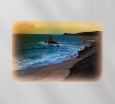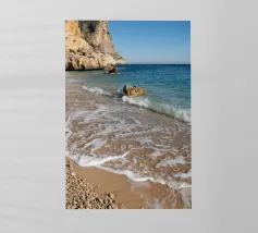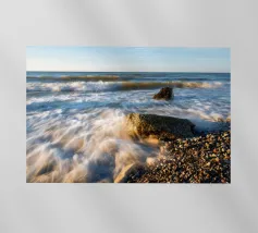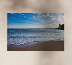 Immaginate una spiaggia dorata con dolci onde che lambiscono la riva mentre il sole radioso riscalda la vostra pelle. In questo paradiso da sogno, potete fuggire dalla vita quotidiana e rilassarvi. Il profumo dell'aria salata del mare e il suono rilassante delle onde vi invitano a rilassarvi completamente. ✨ Disponibile come quadro, pezzo di moda, cuscino e altro ancora.