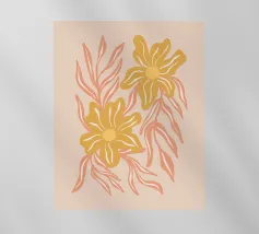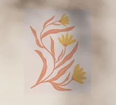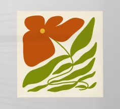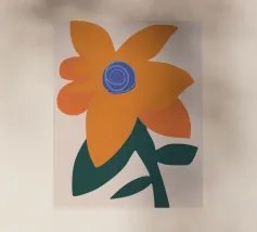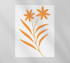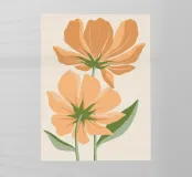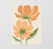 Due fiori arancioni stilizzati con steli e foglie verdi sono raffigurati su uno sfondo chiaro. Il disegno semplice e piatto mette in risalto i petali e le foglie.