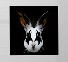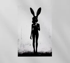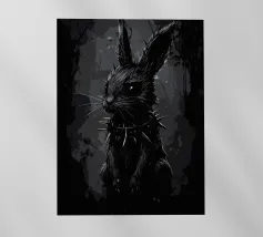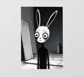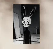Orecchie di coniglio tristi e occhi afflitti in un ambiente buio pellicola backlit