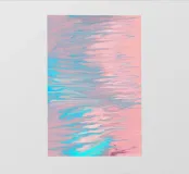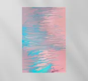 Splendida arte astratta fluida, ispirata a una tranquilla spiaggia rosa, con flussi di colore in blu acqua e rosa pastello.