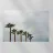 Palme verdi botaniche in fila. Cinque alberi in fila sulla spiaggia in Calabria. Vento, nuvole in una giornata buia d'estate in Italia.