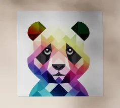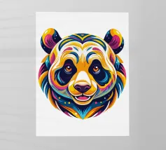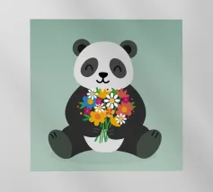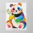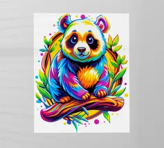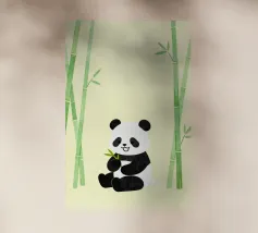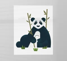 Illustrazione colorata di un simpatico panda con un ramo di bambù. Il motivo giocoso combina cordialità, calma e aree di colore moderne - ideale per i fan dei panda e per i disegni creativi di animali.