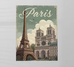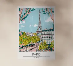 Un poster di viaggio senza tempo ispirato al fascino di Parigi, che cattura scenari iconici in uno stile retrò vintage. Con un'armoniosa miscela di colori e composizioni, quest'opera d'arte porta vibrazioni nostalgiche e voglia di viaggiare sulle vostre pareti - perfetta per i viaggiatori, gli amanti del design o chiunque sogni Parigi.