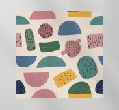 A gentle and pleasing pattern of abstract, organic shapes in pastel colors like pink, blue, and yellow, creating a soft, modern, and cheerful design.