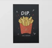 Patate fritte "DIP, EAT, REPEAT". pellicola backlit