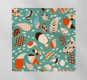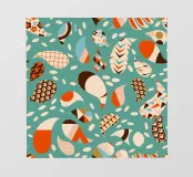 Una vibrante fusione di estetica moderna di metà secolo e boho, questo motivo ispirato al paisley presenta intricati dettagli patchwork con motivi geometrici, floreali e astratti. I toni terrosi dell'arancione, del marrone e del crema si stagliano su uno sfondo verde acqua, creando un'atmosfera nostalgica ma fresca. Perfetto per arredare la casa in stile retrò, per creare una parete elegante o per creare tessuti di grande effetto.