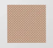 A repetitive geometric pattern composed of white shapes is set against a brown background, creating a uniform and rhythmic design. The arrangement of shapes forms a continuous and seamless visual effect.