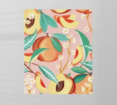 Ravvivate il vostro spazio con il nostro vivace disegno che presenta arance e pesche in una deliziosa tavolozza di colori pesca, ispirata ai colori Pantone. Questo disegno cattura l'essenza succosa della frutta estiva, con illustrazioni giocose di arance mature e di pesche sfogliate, completate da morbide foglie bianche e color pesca che aggiungono un tocco rinfrescante. Le armoniose tonalità di pesca creano un'atmosfera invitante, perfetta per cucine, zone pranzo o tessuti giocosi. Utilizzato per tessuti, carta da parati o complementi d'arredo, questo allegro motivo dona un tocco di fascino ispirato alla frutta e un'esplosione di colore a qualsiasi ambiente.