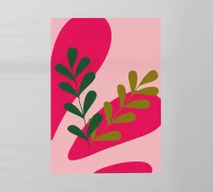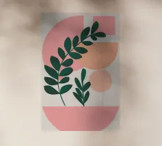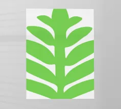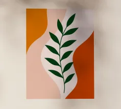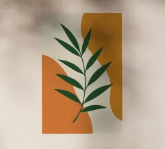 Foglie verdi e rigogliose penzolano con grazia da rami sottili. Il design è caratterizzato da un'estetica minimalista con vivaci elementi naturali.
