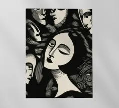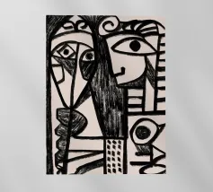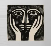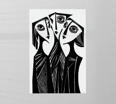 "Perplexed" mostra due volti stilizzati, simili a quelli di una xilografia, fusi in un'unità quasi simmetrica - un dialogo interiore con se stessi, un paradosso visivo tra vicinanza e separazione. Le linee decise ricordano Picasso e l'arte delle maschere africane, mentre le mani in basso sembrano portatrici silenziose di un peso interiore e di un'impotenza. L'opera gioca con l'identità, la riflessione e la dualità. Invita a interrogarsi criticamente - graficamente chiara, emotivamente complessa.
