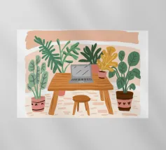 Una donna anziana cura le sue piante in una stanza dai toni tenui, esprimendo saggezza, calma e un legame senza tempo con la natura.