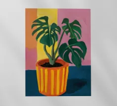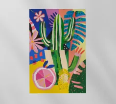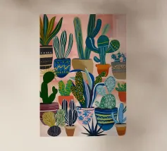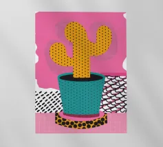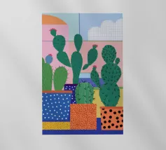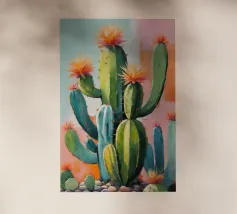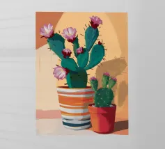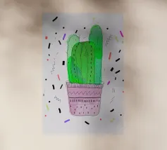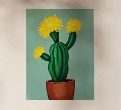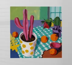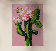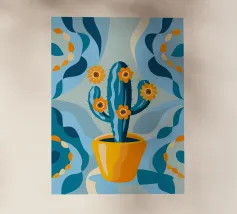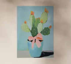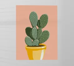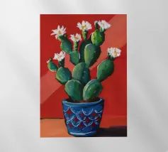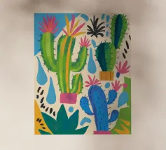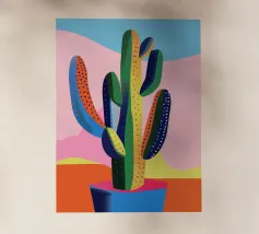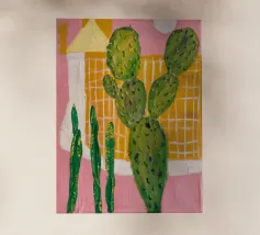 Piccolo cactus in vaso a forma di cubo con pittura fauvismo stile arte