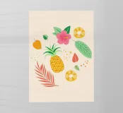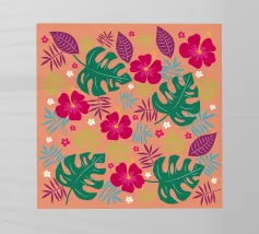 ananas foglie fiori fetta tropicale ibisco mango motivi petali steli verde frutti floreale arancione giallo botanico natura esotico fogliame rosa