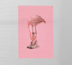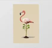 Illustrazione comica della rielaborazione dell'espressione "piedi ben piantati a terra". Utilizzando uno degli uccelli più affascinanti e statici in circolazione: il fenicottero.