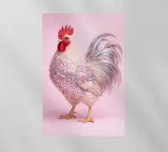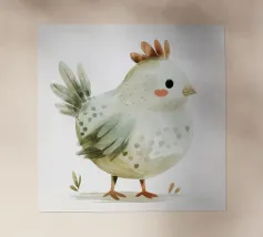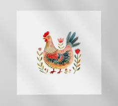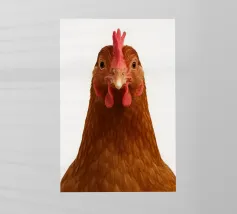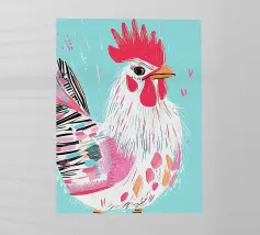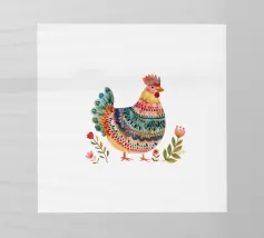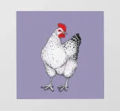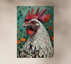 Un disegno a fineliner e pennarello ad acquerello di una gallina. È bianca, nera e rossa.