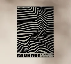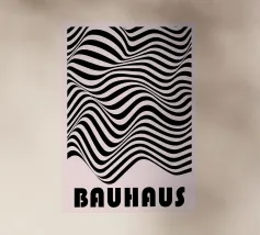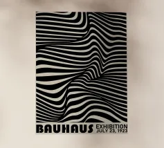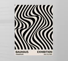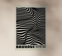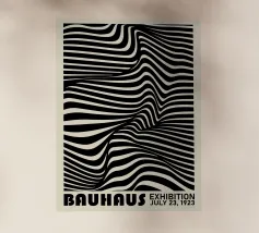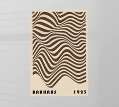 Elegante poster di linea in nero e beige con forme organiche a onda. Il look minimalista combina la naturalezza con l'arte moderna, ispirandosi agli stili Bauhaus e Op Art. Ideale per soggiorni, uffici o spazi creativi.