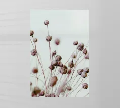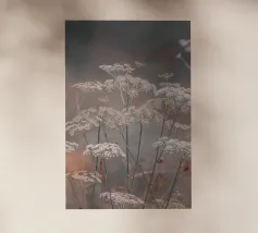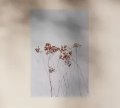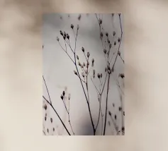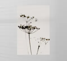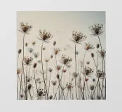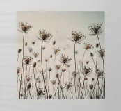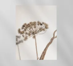 Strutture sottili, fiori delicati e fragili fili d'erba attraversano il quadro come vene in filigrana, creando una scena rasserenante e al tempo stesso profondamente commovente. I toni dominanti del beige conferiscono all'opera un'eleganza sobria e invitano lo spettatore a scoprire la bellezza della semplicità. Questa composizione minimalista sussurra dolcemente la transitorietà della natura e la sottile ma potente bellezza che si nasconde in ogni momento della vita.