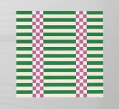 Quadri e linee viola e verde smeraldo su uno sfondo bianco brillante conferiscono a questo disegno un tocco festoso e giocoso. Ideale per aggiungere energia gioiosa e un tocco di moderno eclettismo al vostro arredamento.