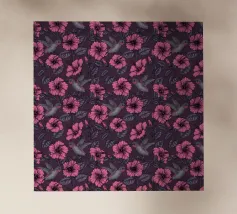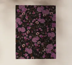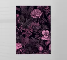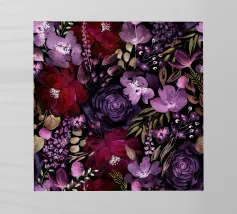 Un sofisticato motivo botanico con delicate foglie, fiori e bacche viola e malva in toni stratificati su uno sfondo prugna intenso. Questo disegno floreale lunatico combina eleganti elementi botanici con ricche sfumature viola per un'estetica raffinata e romantica. Perfetto per gli amanti del viola, per gli appassionati di botanica, per gli amanti dei motivi eleganti e per tutti coloro che apprezzano la sottile bellezza dei fiori monocromatici con profondità e raffinatezza.