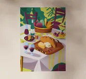 Un incontro rustico all'aperto con vino, pane e formaggio, che evoca un senso di unione e indulgenza.
