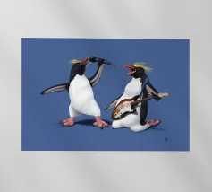 Illustrazione comica dell'interpretazione della barzelletta in bianco e nero, riguardante i pinguini e i giornali.