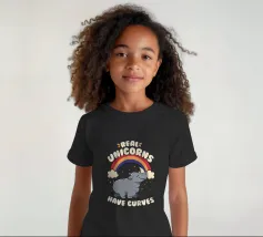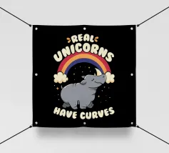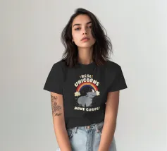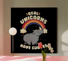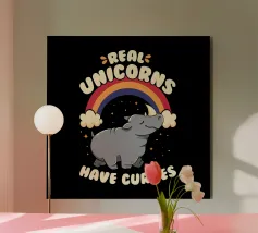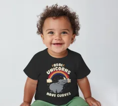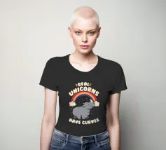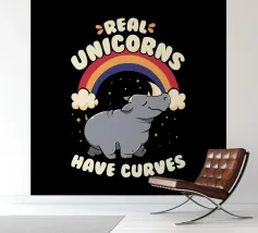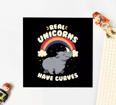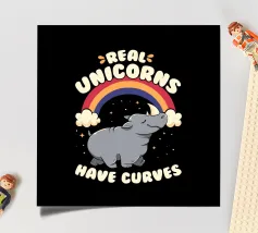 Un rinoceronte che cammina felice con un arcobaleno sullo sfondo, ornato dalla frase "I veri unicorni hanno le curve". Questo disegno con un tocco di umorismo esalta la bellezza così com'è, con le curve. Mostrate il vostro amore per i rinoceronti, gli unicorni e anche per il vostro corpo con questo grazioso disegno.