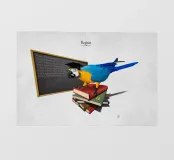 Comical illustration of a socio-political comment on the way education has become a mechanism rather than a system to develop minds. Everything is copy, repeat, copy repeat, parrot fashion.