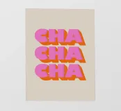 Datevi da fare con questa stampa tipografica retrò "Cha Cha Cha"! Le audaci lettere rosa e la vibrante ombra arancione creano un design sorprendente e giocoso, perfetto per aggiungere un tocco di divertimento vintage a qualsiasi spazio. Questa stampa è una celebrazione del ballo, della musica e dei bei momenti. Creato da showmemars
