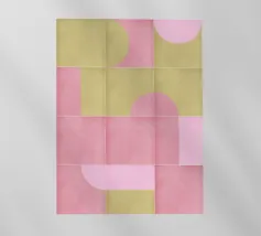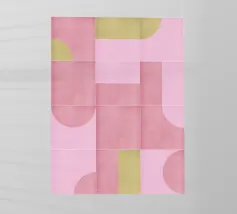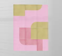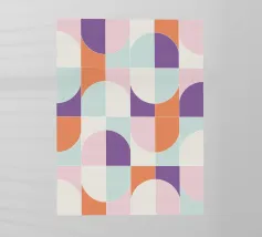 Motivo moderno di metà secolo ispirato ai pavimenti e ai murales in piastrelle di metà secolo. Linee slanciate, forme semplici, texture rumorose e una tavolozza di coralli vivi.