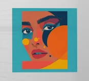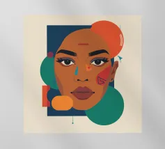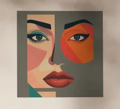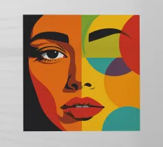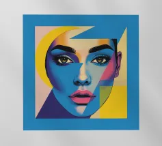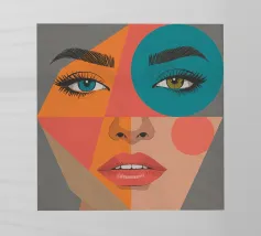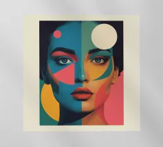 Ritratto astratto di donna con forme geometriche e colore piatto pellicola backlit
