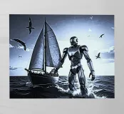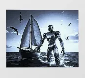 ROBOT AVEC VOILIER. Noir et blanc pellicola backlit