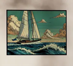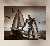 ROBOT AVEC VOILIER. Sépia pellicola backlit