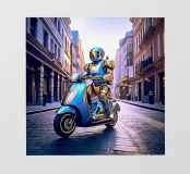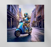 ROBOT EN SCOOTER BLEU. VIOLET pellicola backlit
