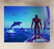 ROBOT SUR UN VOILIER. Eau bleue. pellicola backlit