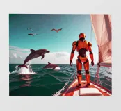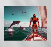 ROBOT SUR UN VOILIER. Eau verte pellicola backlit