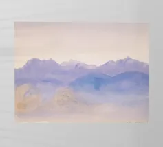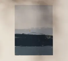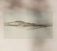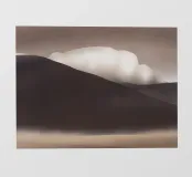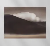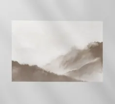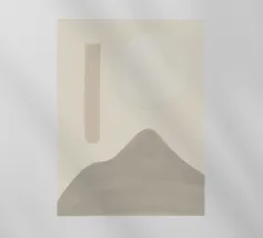 Un paesaggio morbido e astratto è caratterizzato da una tavolozza di colori tenui con delicate transizioni tra tonalità chiare e scure. Una grande nuvola bianca si libra sopra una collina scura, creando un senso di calma e tranquillità.