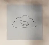 Sagoma di gatto in piedi all'interno di un semplice profilo di nuvola pellicola backlit